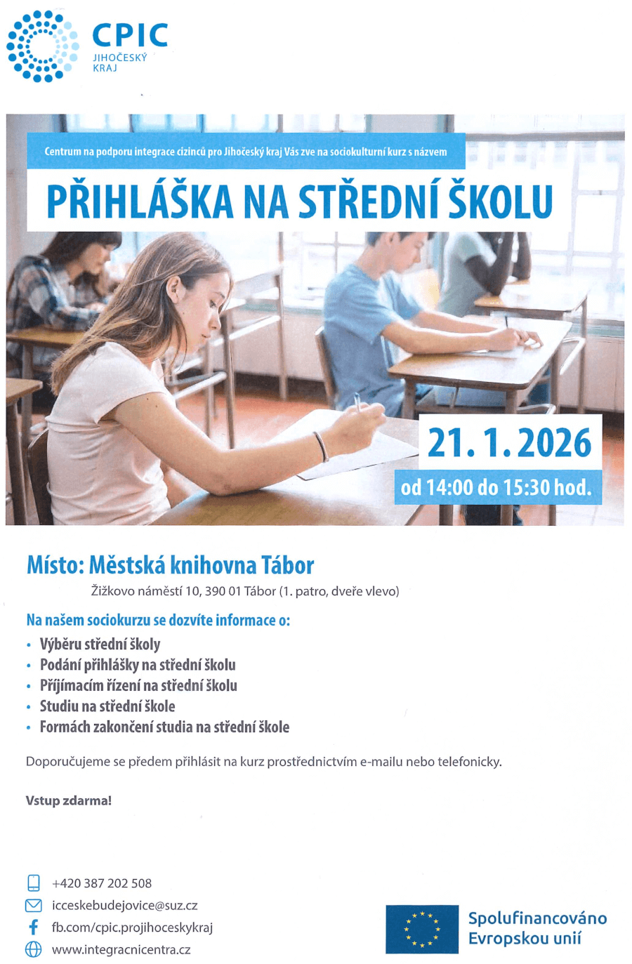 Všechny kurzy probíhají v Městské knihovně Tábor, Žižkovo náměstí 10, Klubovka, 1. patro.